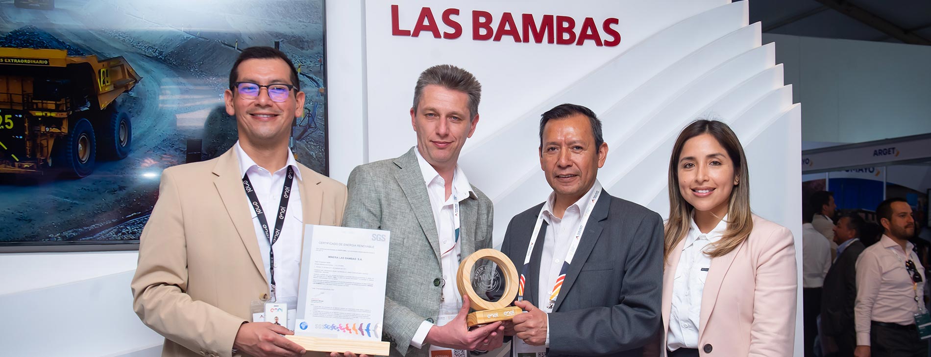 Minera Las Bambas recibió el “Certificado de Energía Renovable” de Enel Perú, acreditada por la empresa SGS, la cual certificó que la empresa eléctrica suministró a la minera el total de su consumo de energía eléctrica durante el año 2021, 1,157,278 MWh , a partir de fuentes renovables.