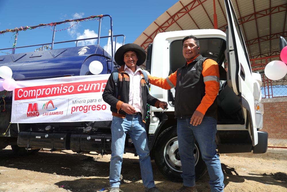 Gracias a la buena vecindad, el diálogo y el entendimiento mutuo, Minera Las Bambas asumió como contrapartida el 80 % del costo de un moderno camión cisterna, entregado a la comunidad de Cancahuani, ubicada en el distrito de Ccapacmarca, provincia de Chumbivilcas, en la región Cusco. Este importante aporte fortalece el desarrollo comunal en una zona próxima al Corredor Minero del Sur.
