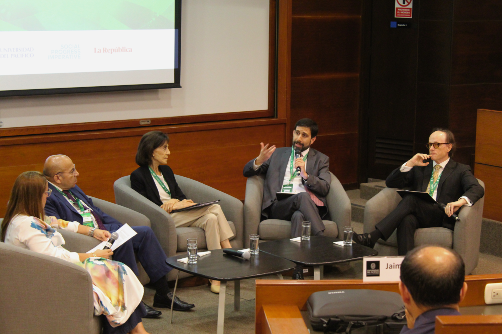 El encuentro reunió a Jaime García, director regional de Social Progress Imperative, junto a Claudio Cáceres, Matilde Schwalb, Jaime Dupuy y Kurt Burneo. La actividad se realizó en la Universidad del Pacífico.